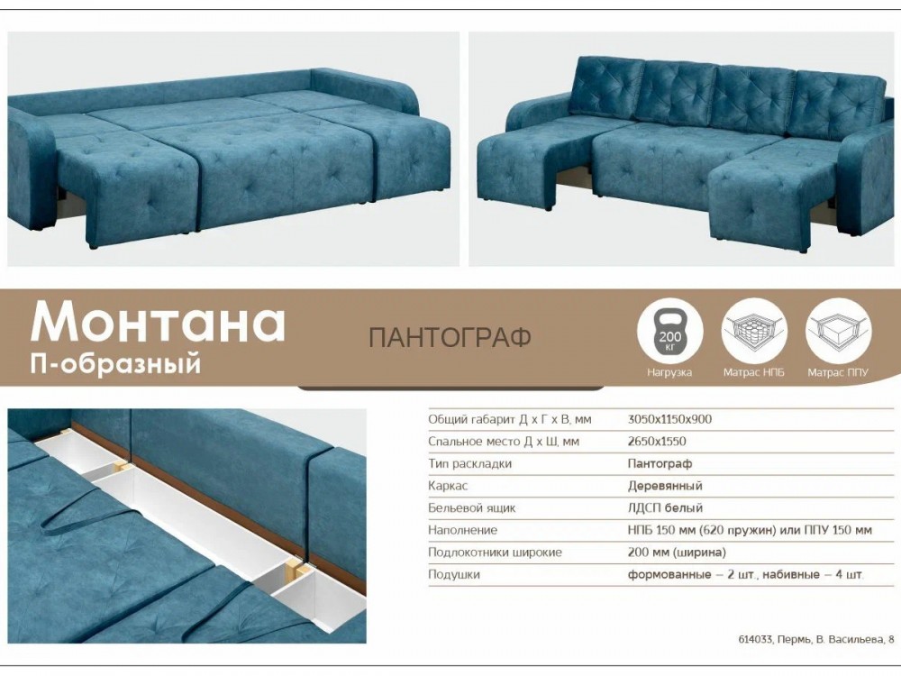 Диван Монтана 2000 производства «DimarroMebel» по цене 56200руб. для уюта в вашем доме. Доступные цвета: Зеленый, Бежевый, Коричневый, Синий, Желтый. Фотографии и характеристики - в карточке товара. Похожие товары можно посмотреть в разделе «Прямые диваны». Подоробности о Диван Монтана 2000 узнавайте у наших менеджеров по телефону +7 (982) 675-60-72.